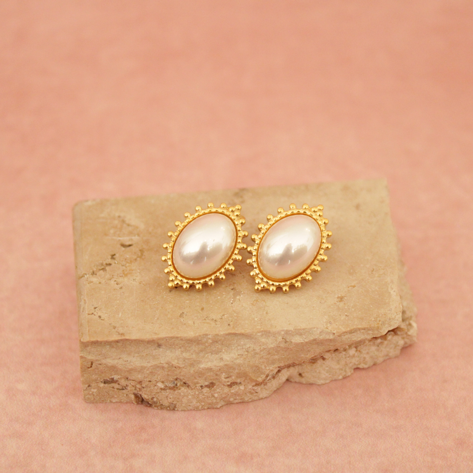 Aretes en acero inoxidable con imitación de perla.